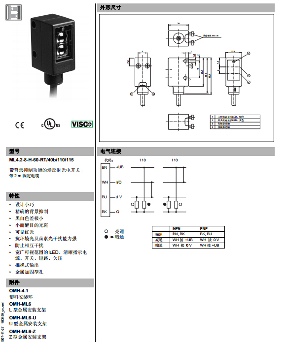 ML4.2-8-H-60-RT/40b/110/115,漫反射型傳感器