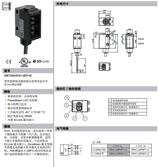 OBT350-R101-2EP-IO,漫反射型傳感器