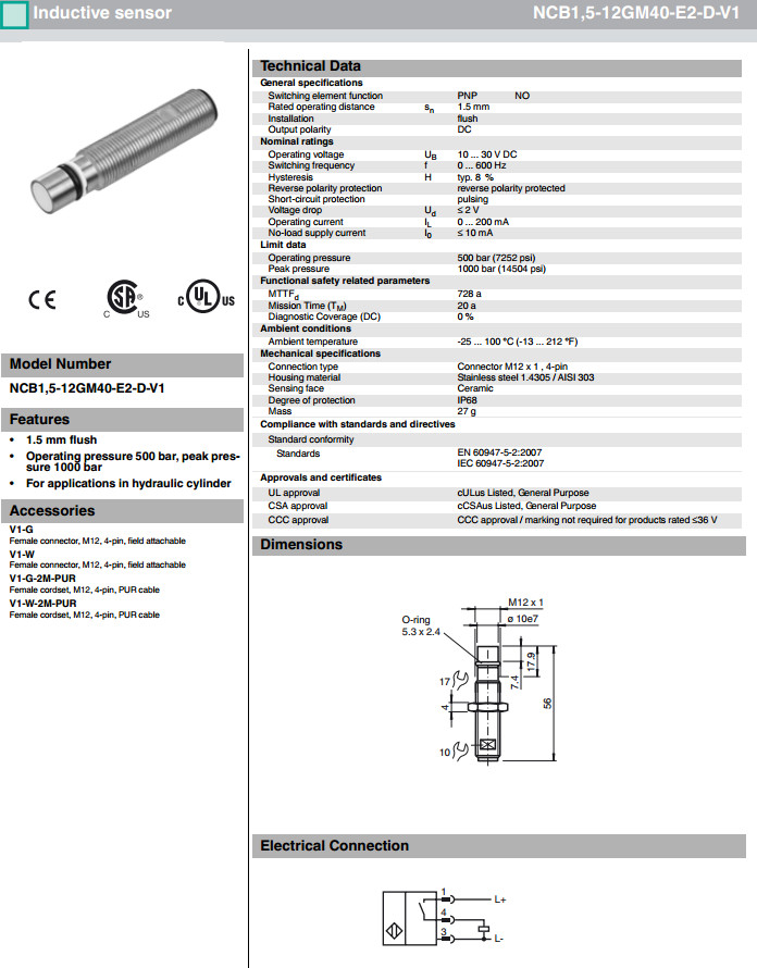 NCB1,5-12GM40-E2-D-V1感應式傳感器