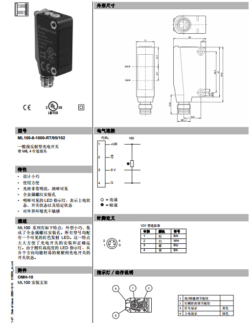 ML100-8-1000-RT/95/102,漫反射型傳感器