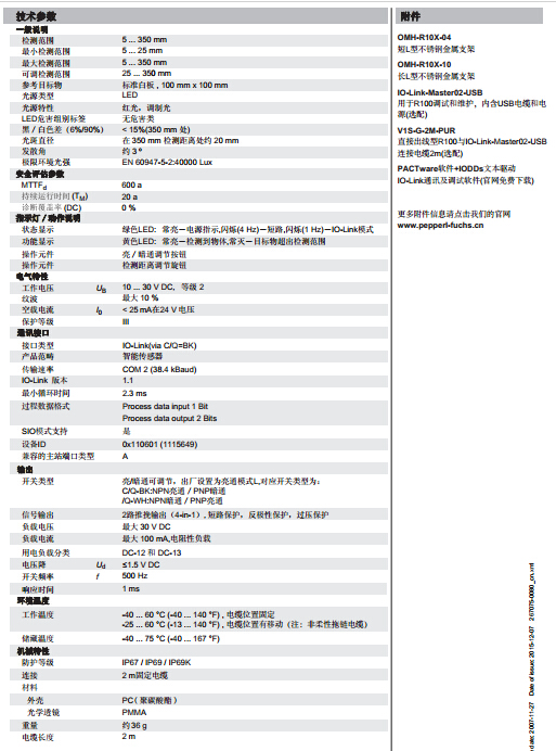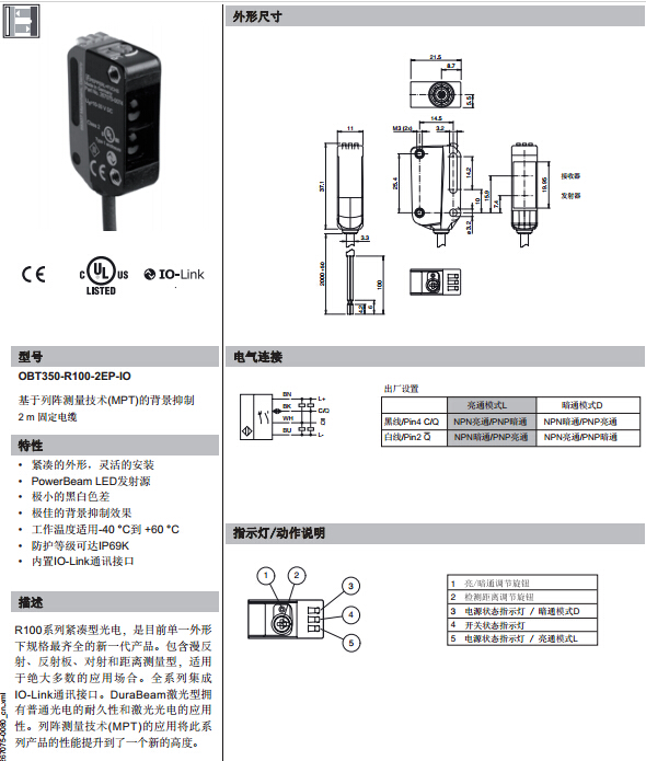 OBT350-R100-2EP-IO,漫反射型傳感器
