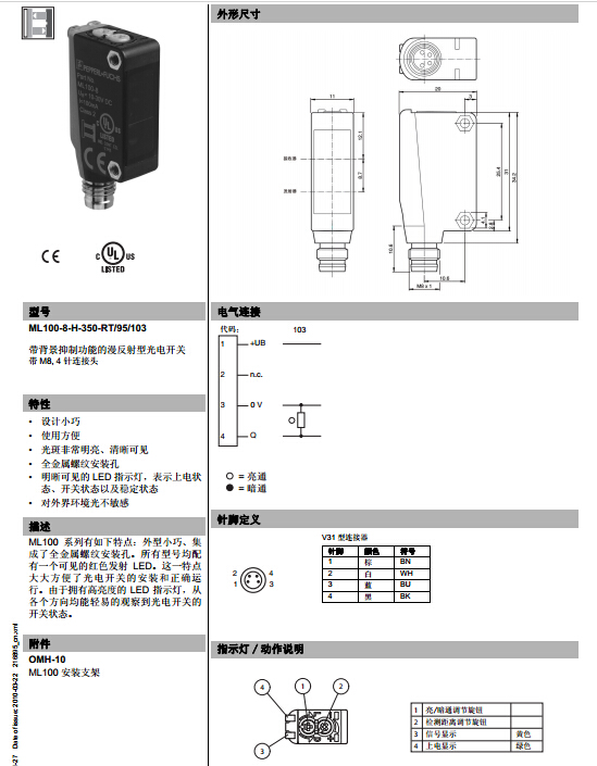 ML100-8-H-350-RT/95/103,漫反射型傳感器