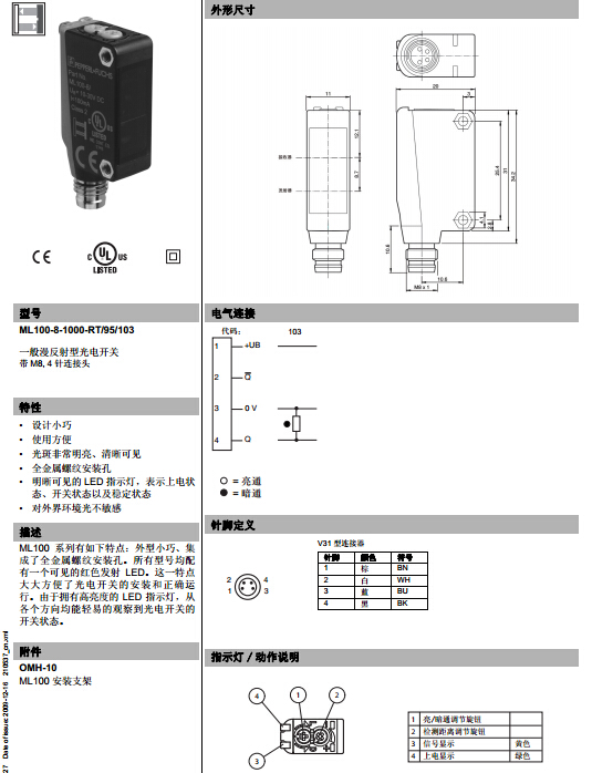 ML100-8-1000-RT/95/103,漫反射型傳感器