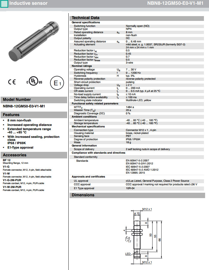 NBN8-12GM50-E0-V1-M1(常閉),NBN8-12GM50-E0-V1-M1