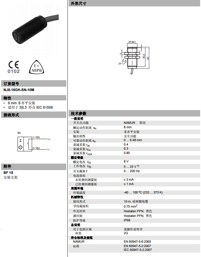 NJ8-18GK-SN-10M電感式接近開關(guān)