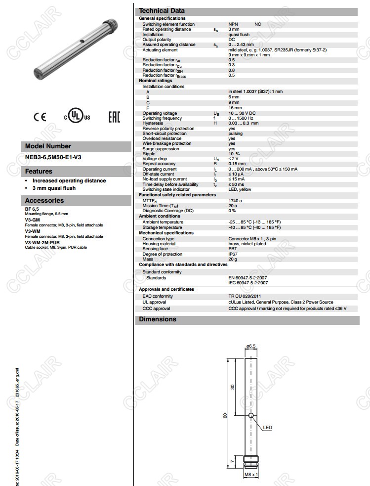 NEB3-6,5M50-E0-V3,NEB3-6,5M50-E1-V3,電感式接近開關(guān)