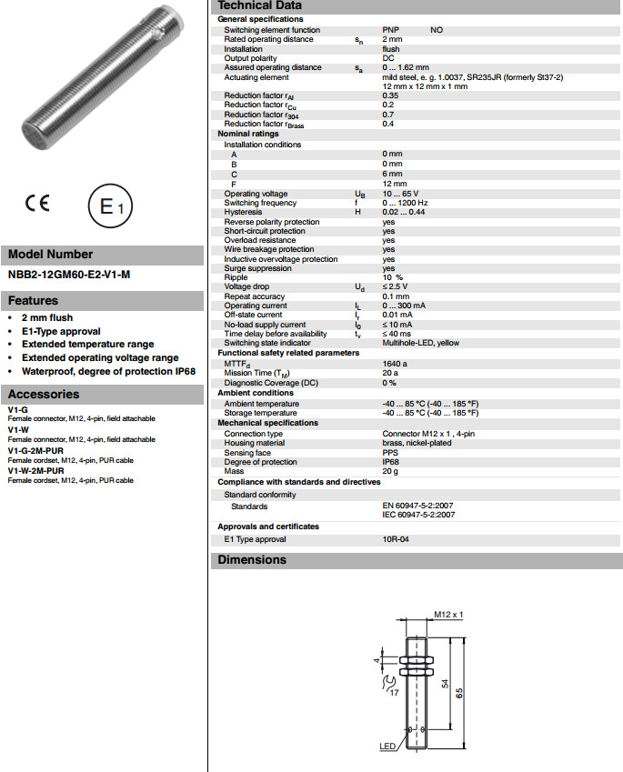 NBB2-12GM60-E2-V1-M電感式接近開關(guān)