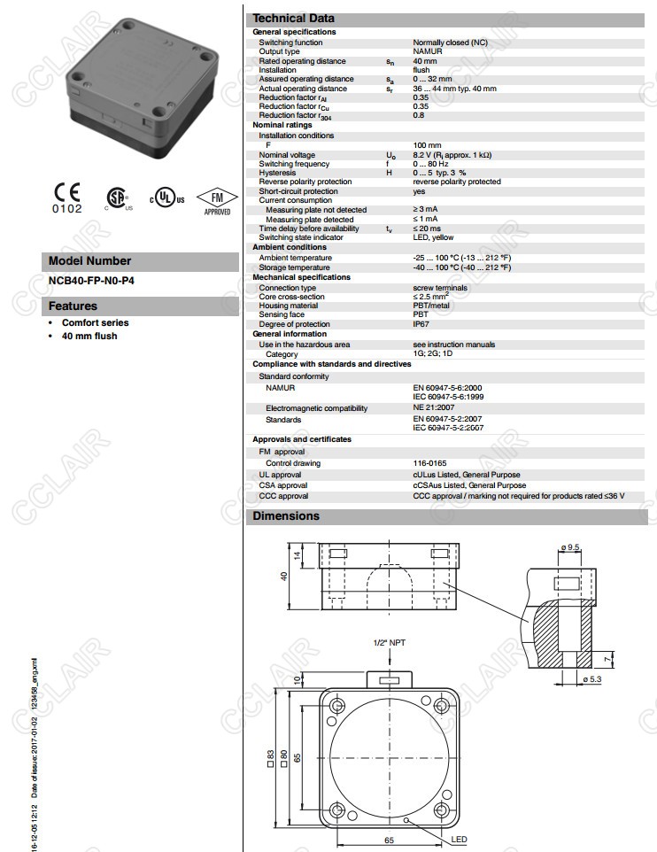 NCB40-FP-N0-P4,感應式傳感器
