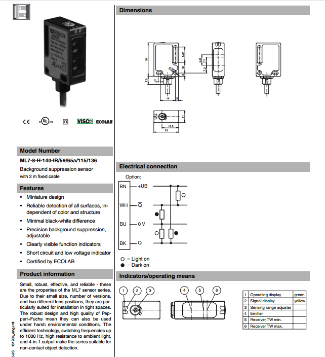 ML7-8-H-140-IR/59/65a/115/136,漫反射型傳感器