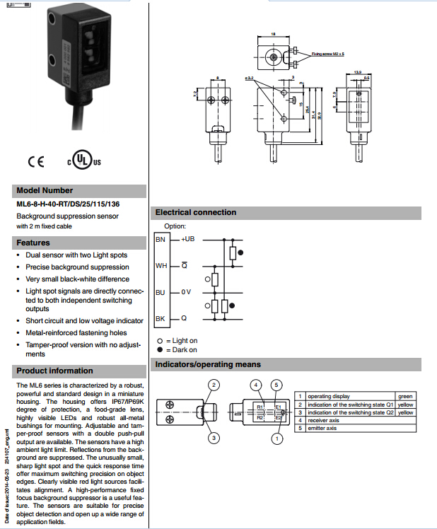 ML6-8-H-40-RT/DS/25/115/136,漫反射型傳感器