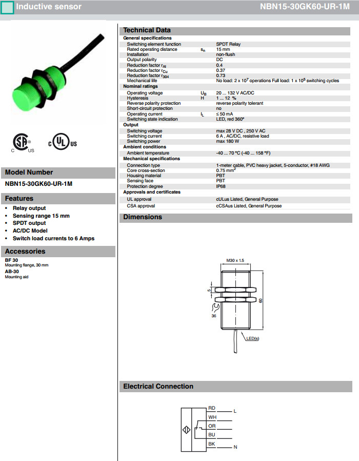 NBN15-30GK60-UR-1M,NBN15-30GK60-UR-3M,NBN15-30GK60-UR-5M