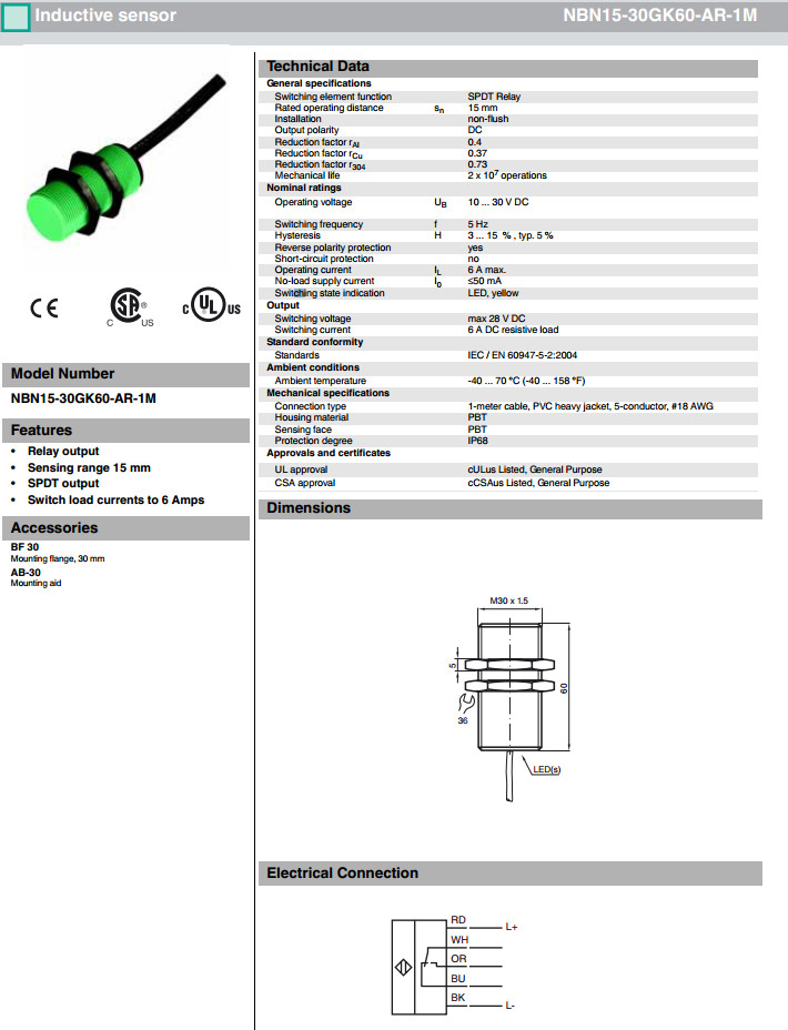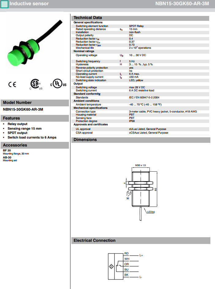 NBN15-30GK60-AR-1M,NBN15-30GK60-AR-3M