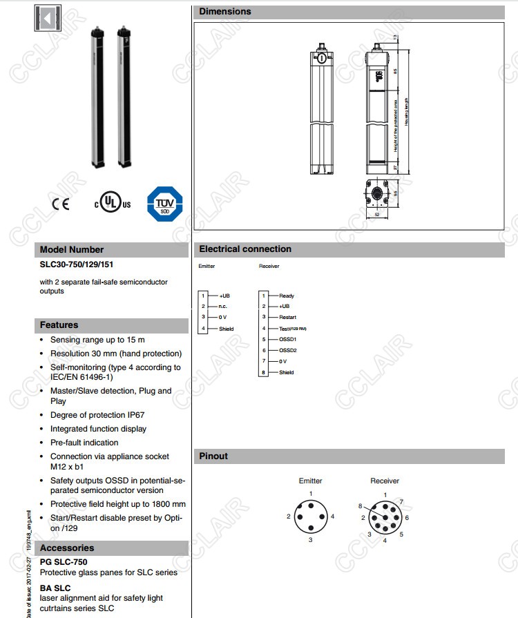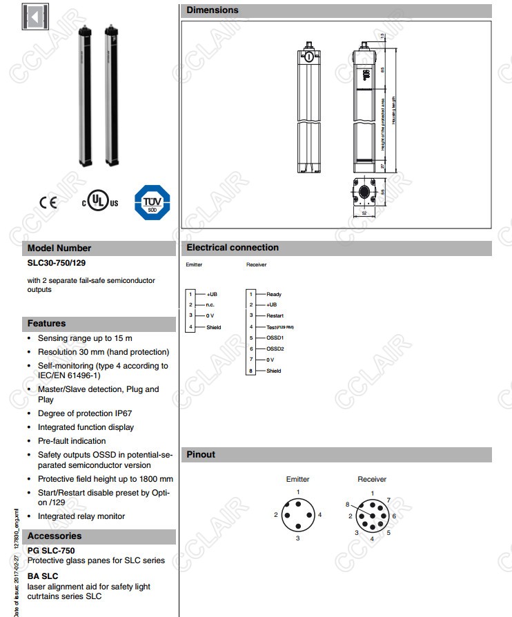 SLC30-750/129,SLC30-750/129/151,SLC30-750/151,安全光柵