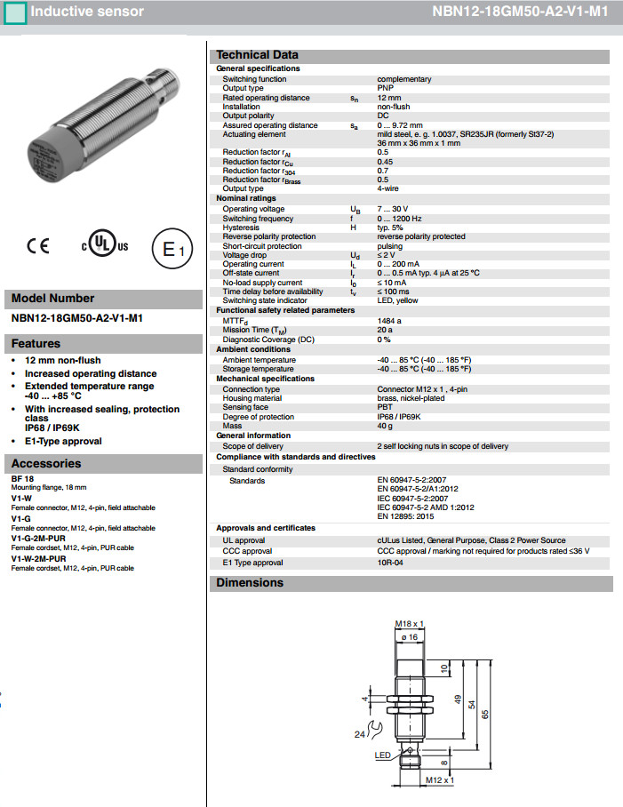 NBN12-18GM50-A0-V1-M1,NBN12-18GM50-A2-V1-M1