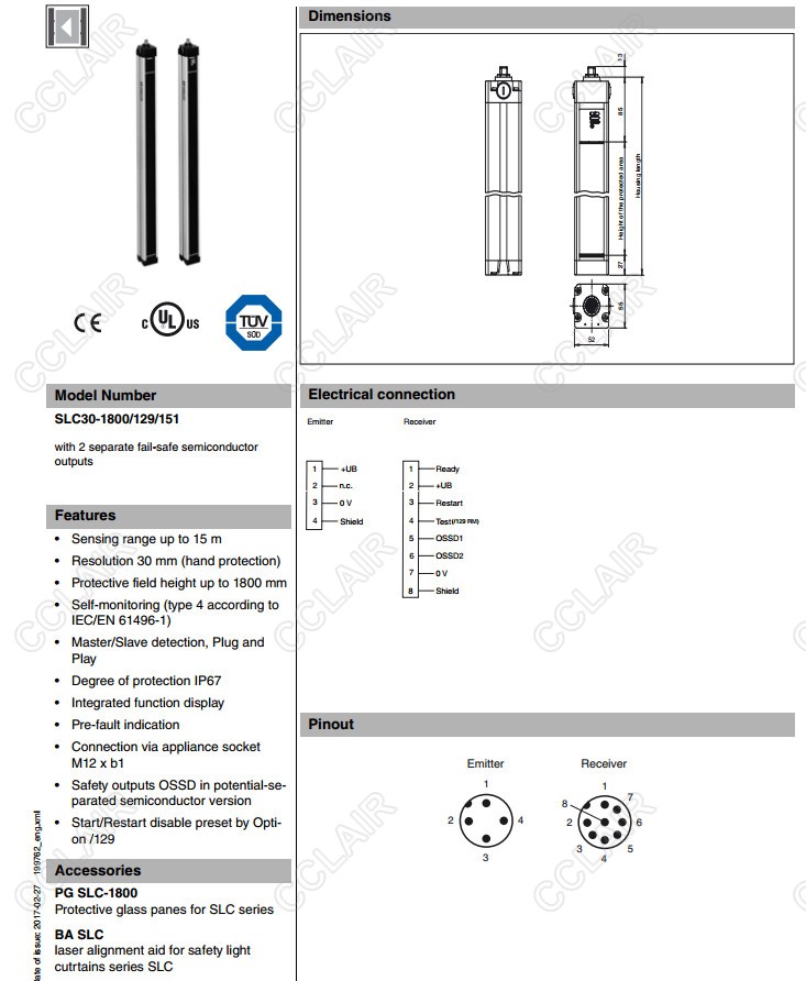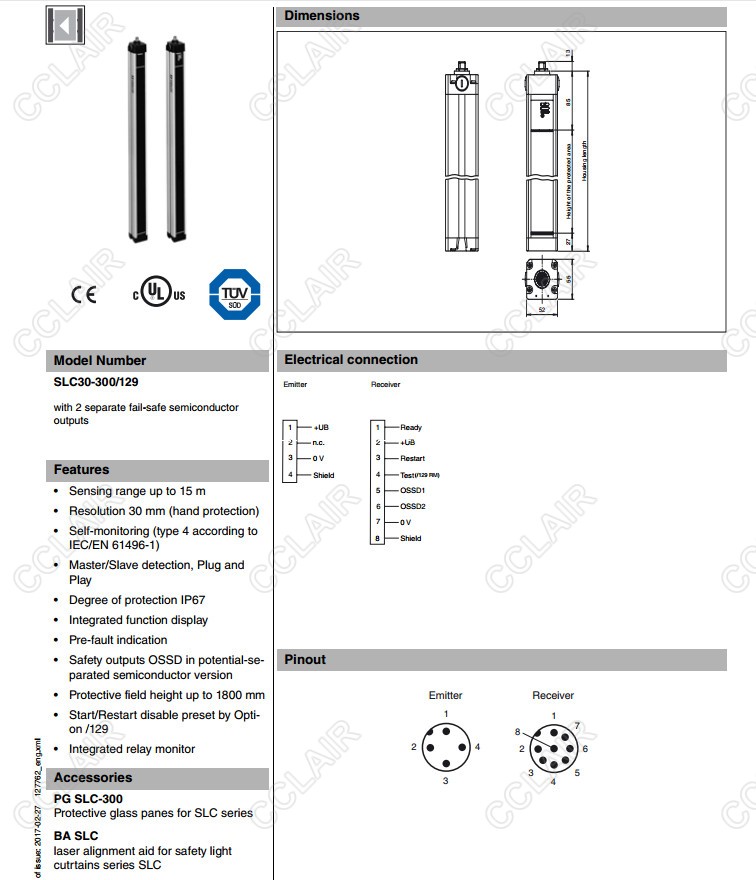 SLC30-1650/151,SLC30-1800/129/151,SLC30-1800/151,SLC30-300/129,安全光柵