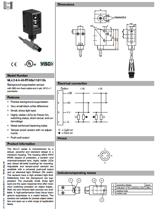ML4.2-8-H-40-RT/40b/110/115b,漫反射型傳感器