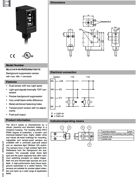 ML4.2-8-H-40-IR/DS/40b/110/115,漫反射型傳感器