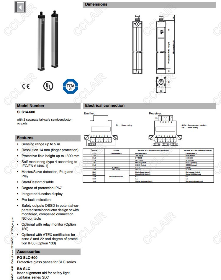 SLC14-300/31,SLC14-450,SLC14-450-S,SLC14-450/31,SLC14-600,SLC14-600-S,安全光柵