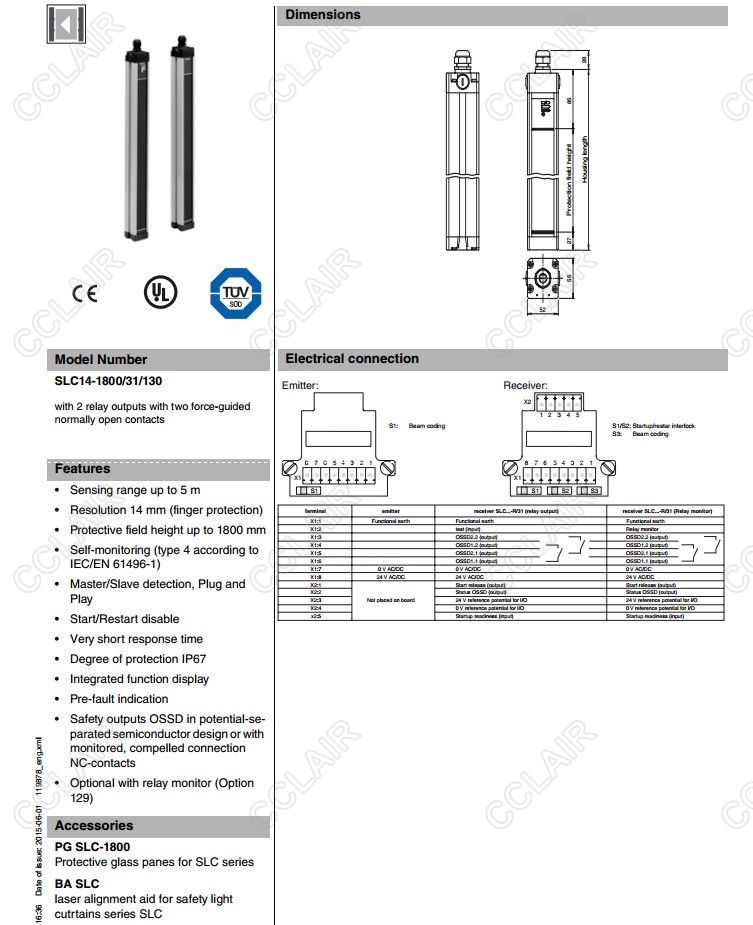 SLC14-1650/130,SLC14-1800/130,SLC14-1800/31/130,SLC14-300,SLC14-300-S,安全光柵
