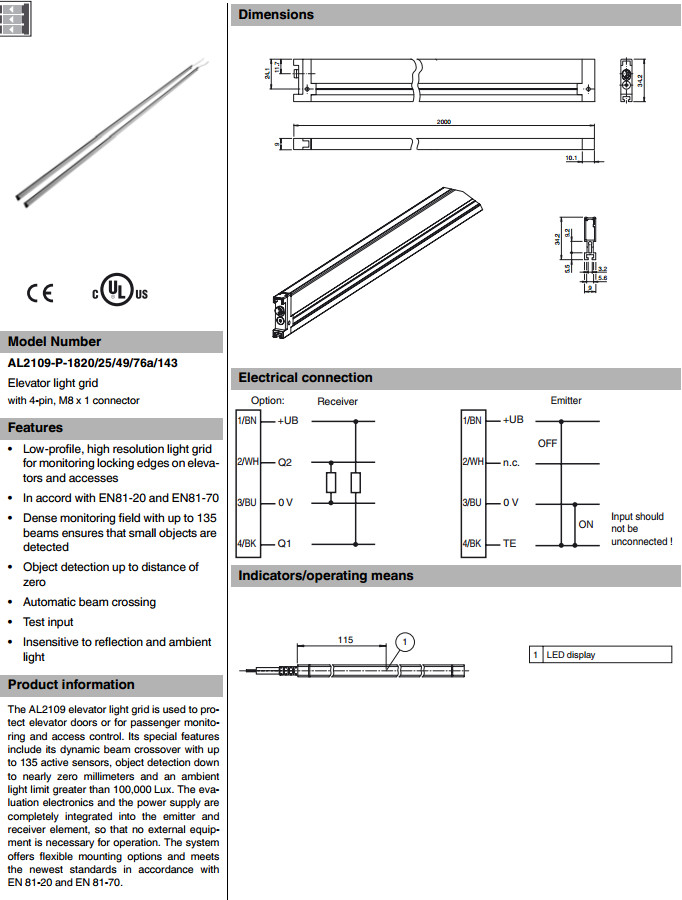 AL2109-P-1820/25/49/76a/143電梯傳感器