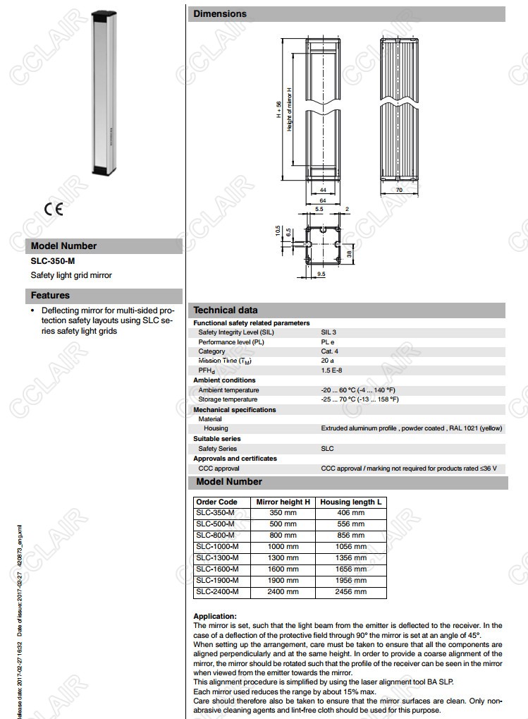 SLC-350-M,SLC-500-M,SLC-800-M,安全光柵反光鏡