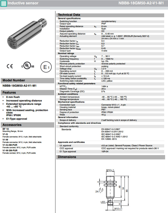 NBB8-18GM50-A0-V1-M1,NBB8-18GM50-A2-V1-M1