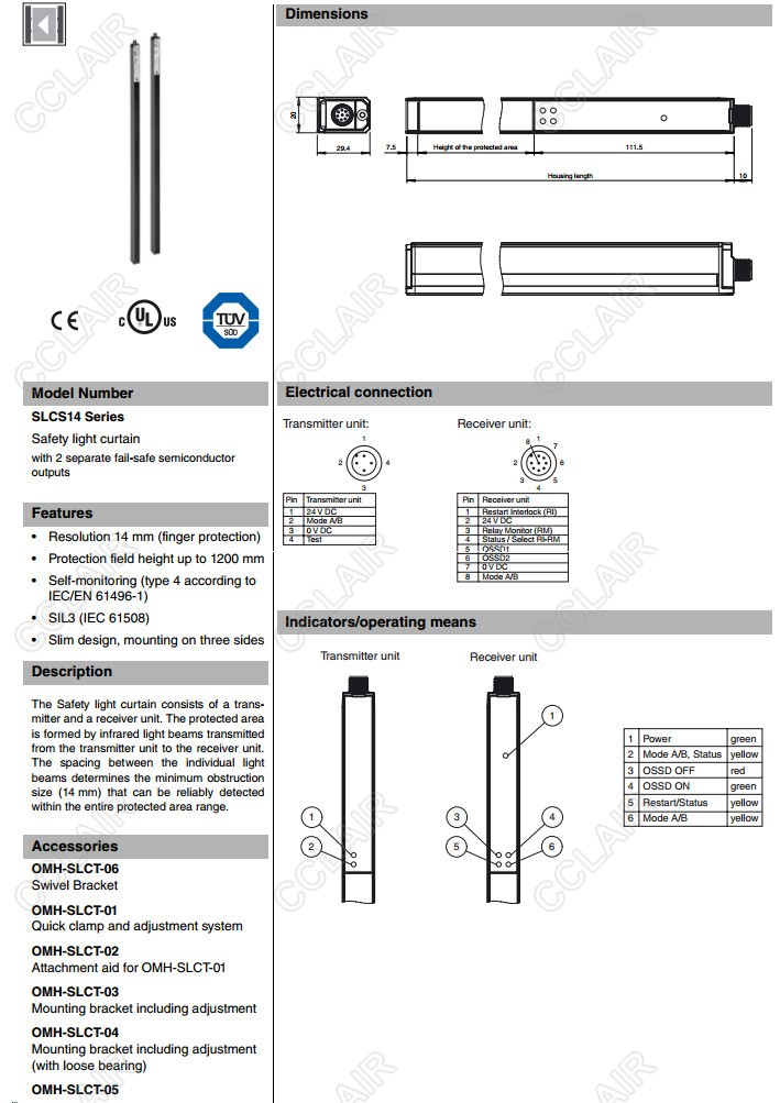 SLCS14Series,SLCS30Series,SLCS60Series,SLCS90Series,安全光柵