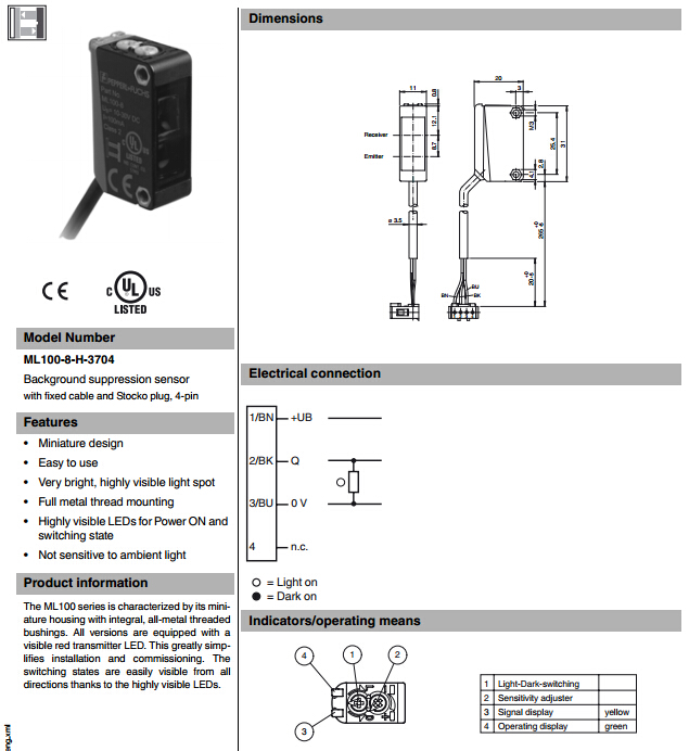 ML100-8-H-3704,漫反射型傳感