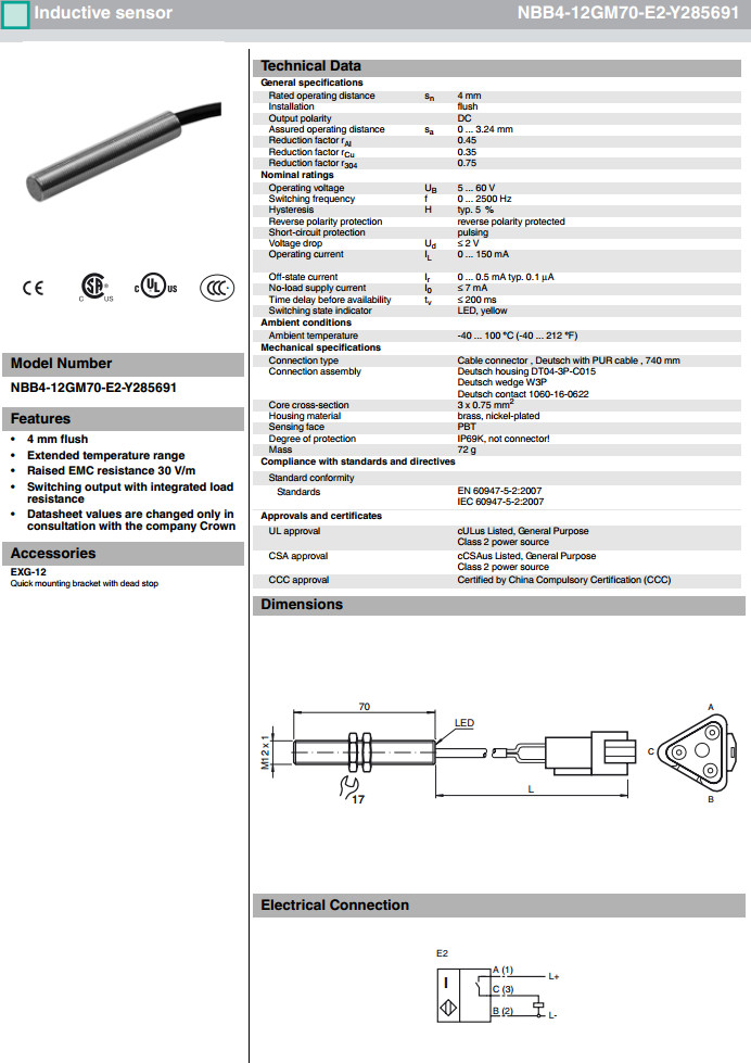 NBB4-12GM70-E2-Y285691,NBB4-12GM70-E2-Y285692