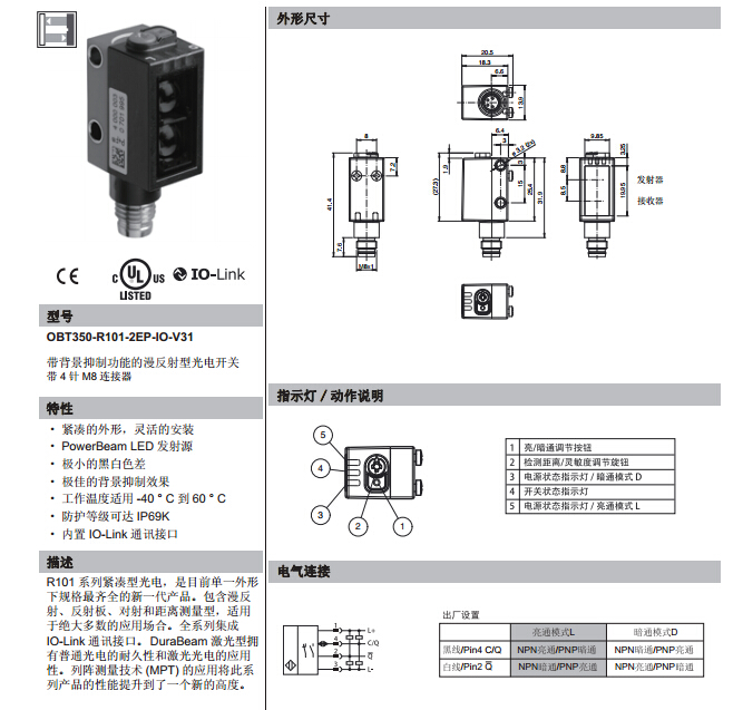 OBT350-R101-2EP-IO-V31,漫反射型傳感器