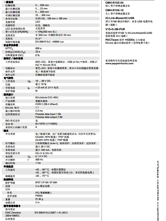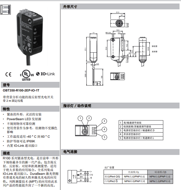OBT350-R100-2EP-IO-1T,漫反射型傳感器