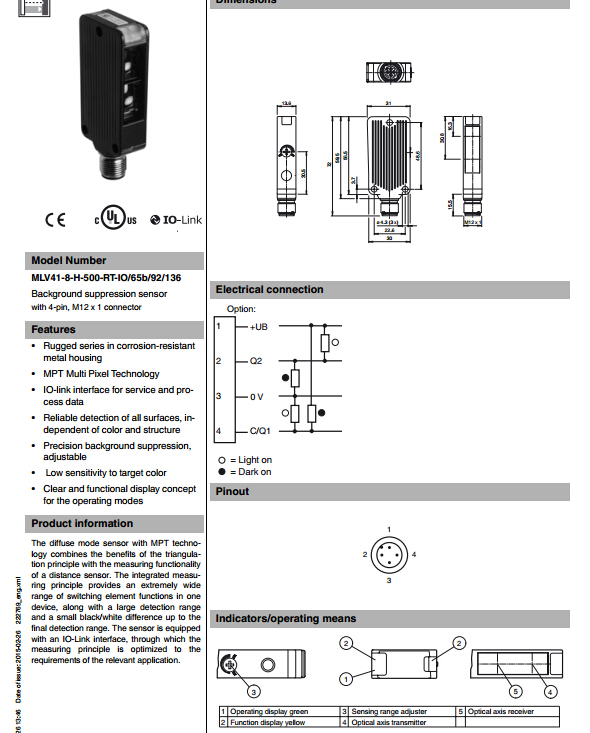 MLV41-8-H-500-RT-IO/65b/92/136,漫反射型傳感器