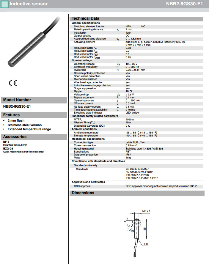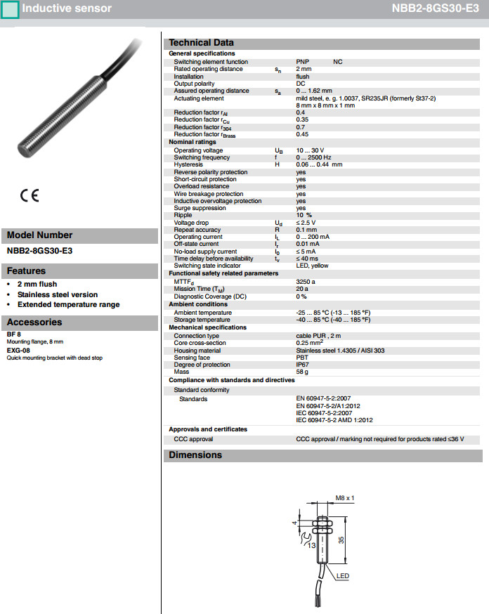 NBB2-8GS30-E0,NBB2-8GS30-E1,NBB2-8GS30-E3