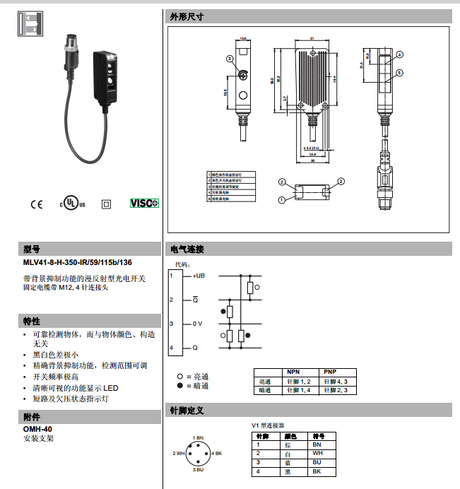 MLV41-8-H-350-IR/59/115b/136,漫反射型傳感器