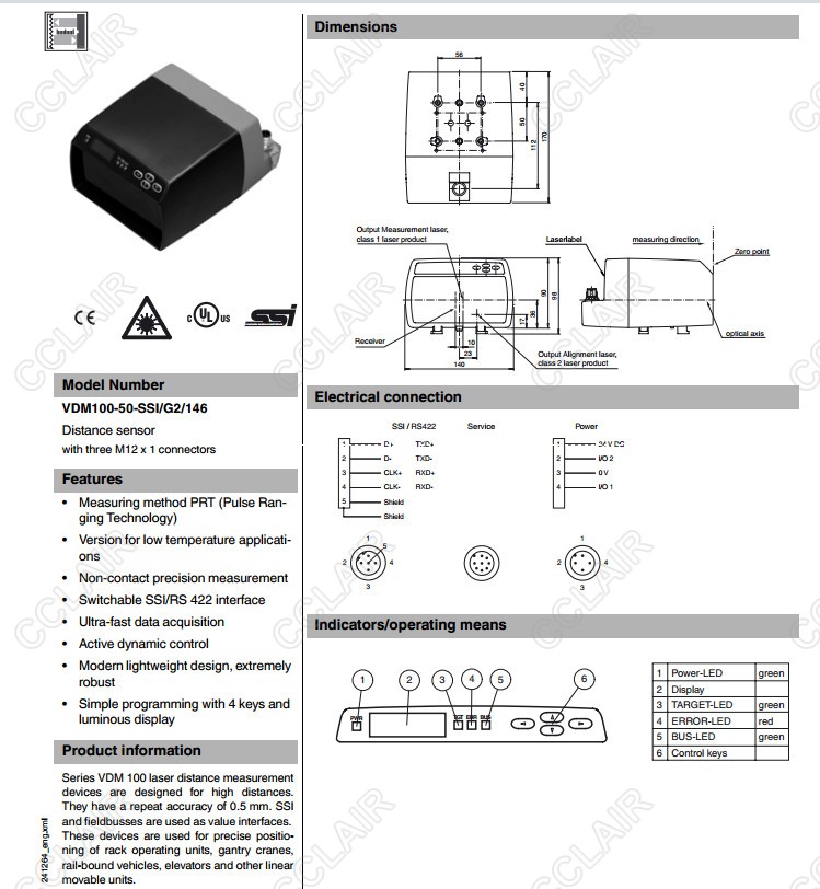 VDM100-300-SSI/G2,VDM100-50-P/G2/146,VDM100-50-SSI/G2/146,測距傳感器