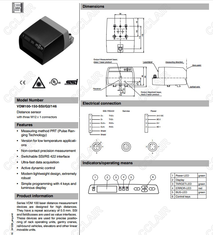 VDM100-150-SSI/G2/146,VDM100-300-EIP/G2,VDM100-300-P/G2,測距傳感器