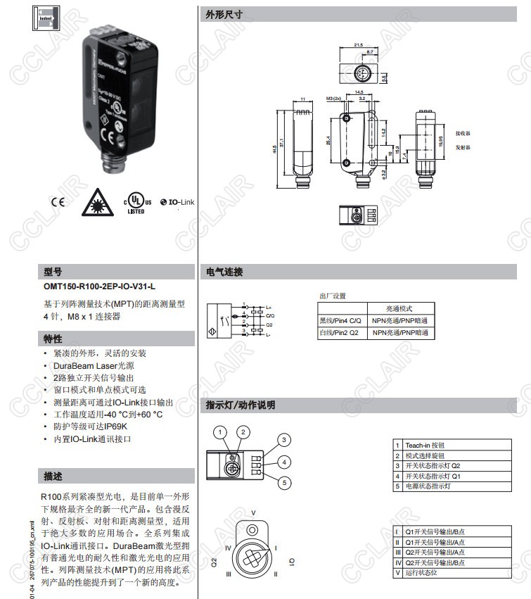 OMT100-R100-2EP-IO-V31,OMT150-R100-2EP-IO-V31-L,距離傳感器