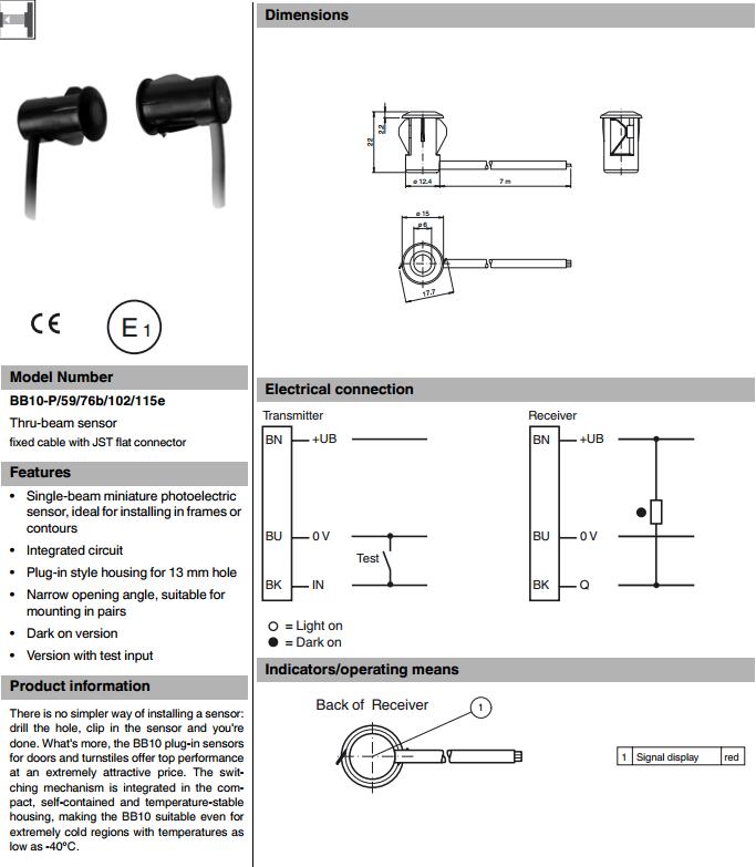 BB10-P/59/76b/102/115e禁系統(tǒng)的傳感器
