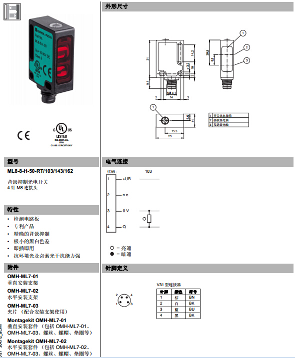 ML8-8-H-50-RT/103/143/162,漫反射型傳感器