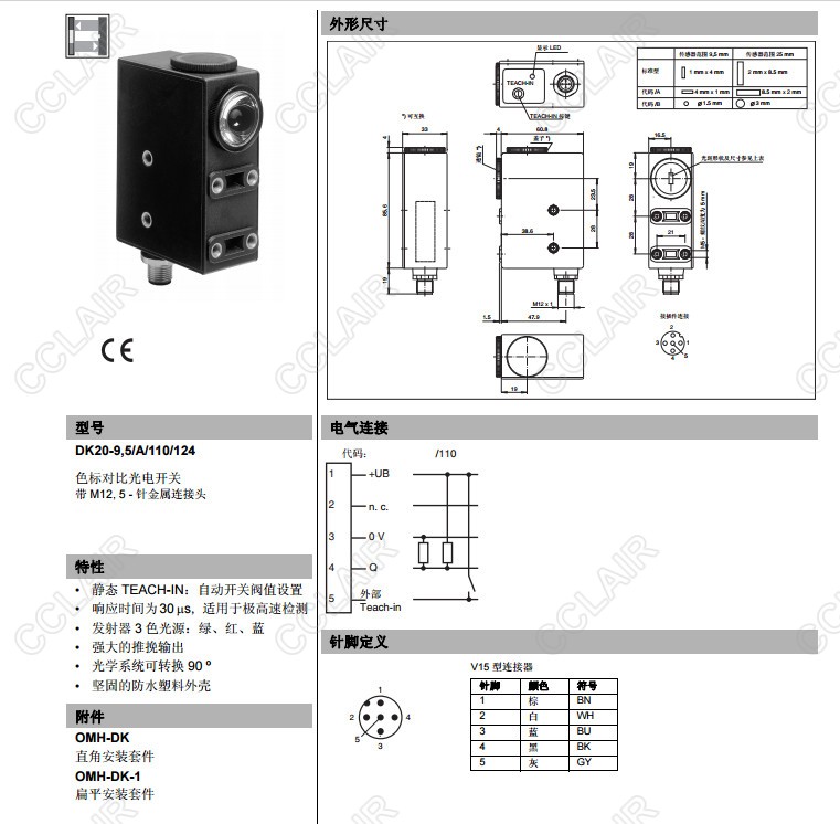 DK20-9,5/110/124,DK20-9,5/A/110/124,DK20-9,5/B/110/124,色標對比度傳感器
