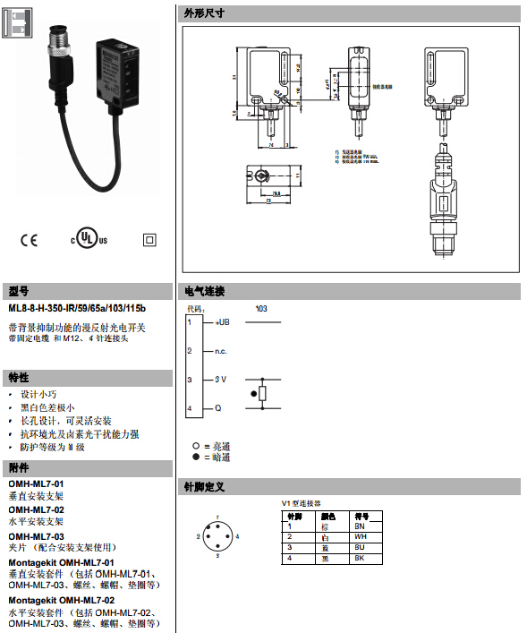 ML8-8-H-350-IR/59/65a/103/115b,漫反射型傳感器