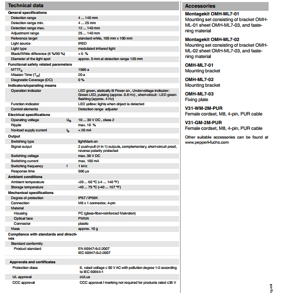 ML7-8-H-140-IR/59/65a/136/143,漫反射型傳感器