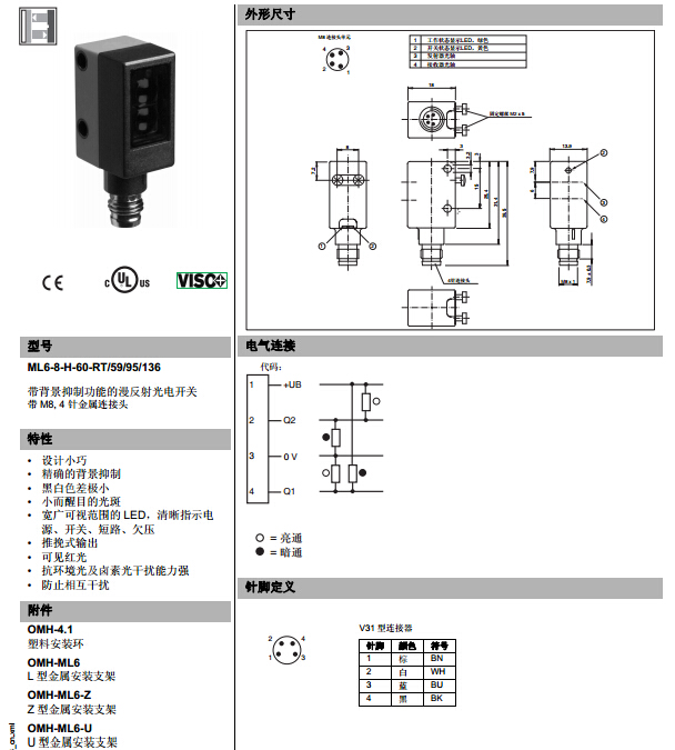ML6-8-H-60-RT/59/95/136,漫反射型傳感器