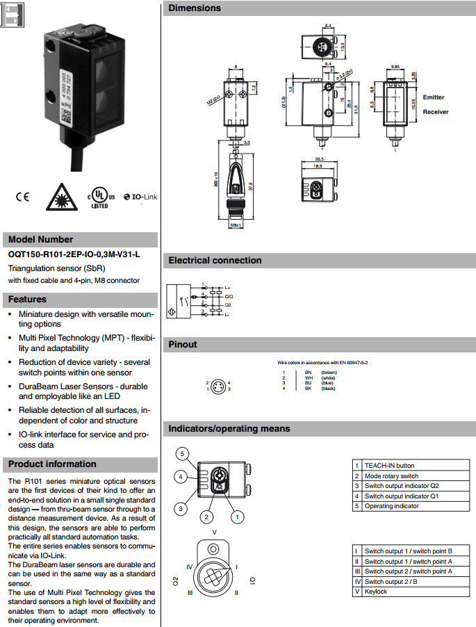 OQT150-R101-2EP-IO-0,3M-V31-L,開關(guān)傳感器