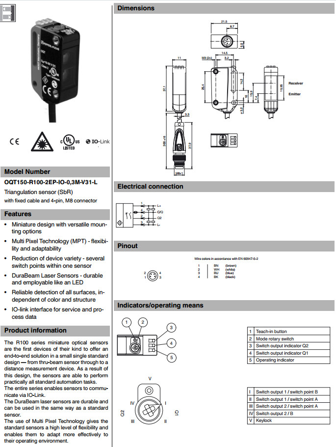 OQT150-R100-2EP-IO-0,3M-V31-L,開關(guān)傳感器