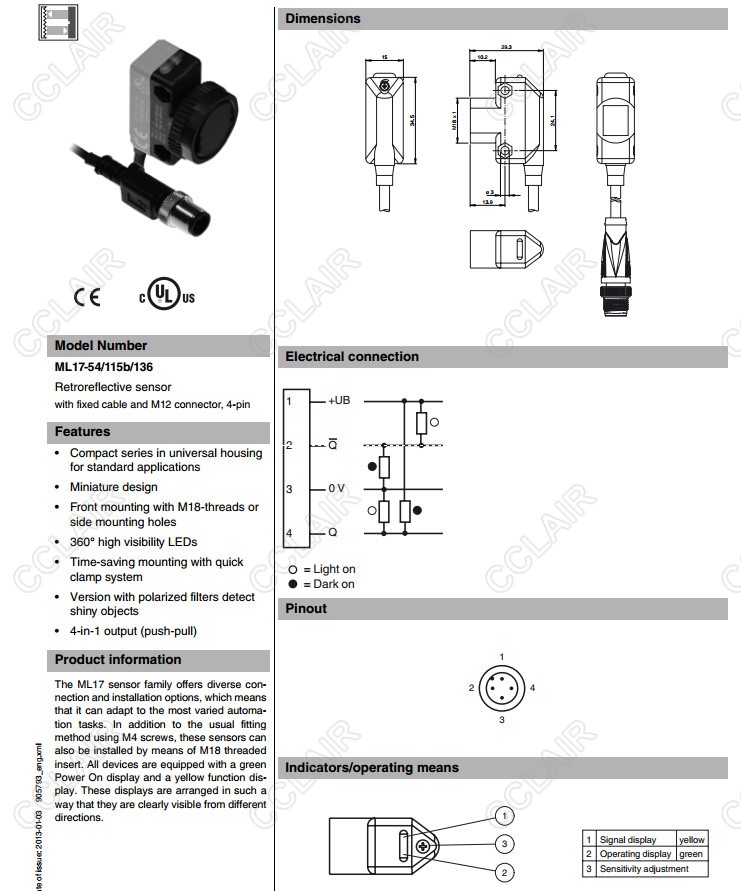 ML17-54/115b/120,ML17-54/115b/127,ML17-54/115b/136,反射板型傳感器