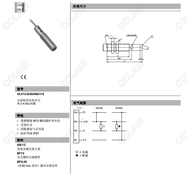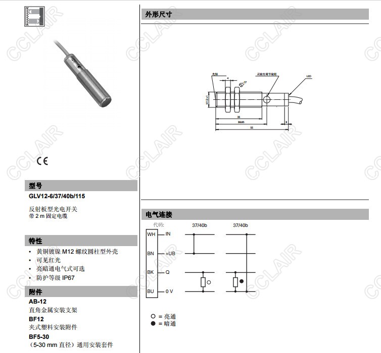 GLV12-6/36/40b/115,GLV12-6/37/40b/115,反射板型傳感器