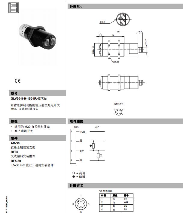 GLV30-8-H-150-IR/47/73c,漫反射型傳感器