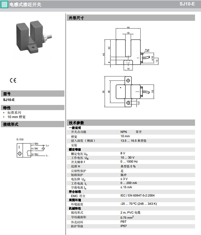 SJ10-E,SJ10-E2,SJ10-N,SJ10-N-5M感應式槽形傳感器