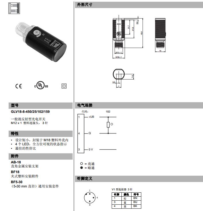 GLV18-8-450/25/102/159,漫反射型傳感器